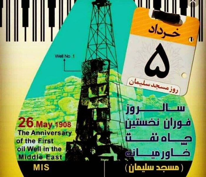 پیرو نامه شماره ۱۴٠۳/۲۳٠۶۵۷ مورخ ۱۴٠۳/۱٠/۱۹ پیرامون پیشنهاد نامگذاری روز ۵ خرداد مصادف با سالروز آغاز صنعت و مدرنیته در خاورمیانه به عنوان روز مسجدسلیمان به آگاهی می رساند پیشنهاد مذکور در جلسه مورخ ۱۴٠۴/۲/۱۷ کارگروه نامگذاری روزها و مناسبت های خاص (کمیسیون تقویم) مطرح شد و پس از بحث و بررسی روز ۵ خرداد ماه با عنوان سالروز کشف اولین چاه نفت در خاورمیانه برای درج در تقویم رسمی کشور مورد تائید قرار گرفت. شایان ذکر است پیشنهاد ۳٠ مهر به عنوان سالروز ایستادگی و سربلندی مردم مسجدسلیمان در برابر تجاوز رژیم بعث عراق پس از طرح و بررسی به دلیل تعدد حوادث دوران دفاع مقدس در این سطح که منجر به درخواست های مشابه خواهد شد مورد تائید قرار نگرفت.